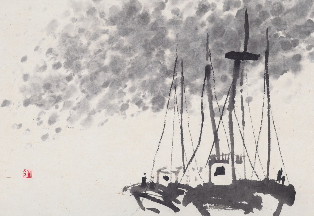 하늘빛 물든 뱃전에 기대어